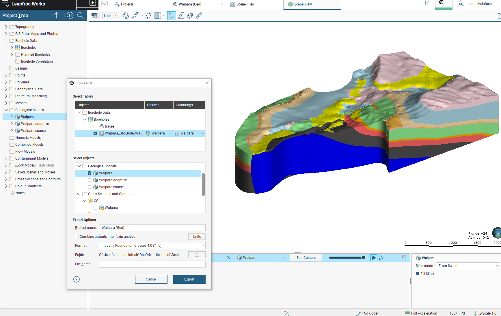 Leapfrog Works позволяет делиться разрезами, изображениями и видеороликами, интерактивными 3D сценами, данными BIM и CAD, увеличивая производительность, а также помогая пользователю лучше понять ситуацию.