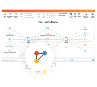 Проиллюстрируйте свой аналитический процесс и его результаты в постоянной интерактивной связи с вашими данными и свободно добавляйте элементы проекта (перекрывающиеся коды, заметки и т. д.). Используйте автоматические шаблоны, чтобы быстро приступить к работе, или используйте инструмент свободно, как настоящий программный пакет для составления карт разума.