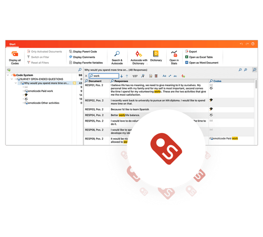 Анализ ответов на открытые вопросы в MAXQDA всегда был сильной стороной. Новое рабочее пространство ответов добавляет мощные функции для работы с данными опроса.